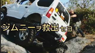岩のV字【ロック】で絶対絶命のジムニーをレスキュー!★救出作戦 rock crawling rescue【MS-16】